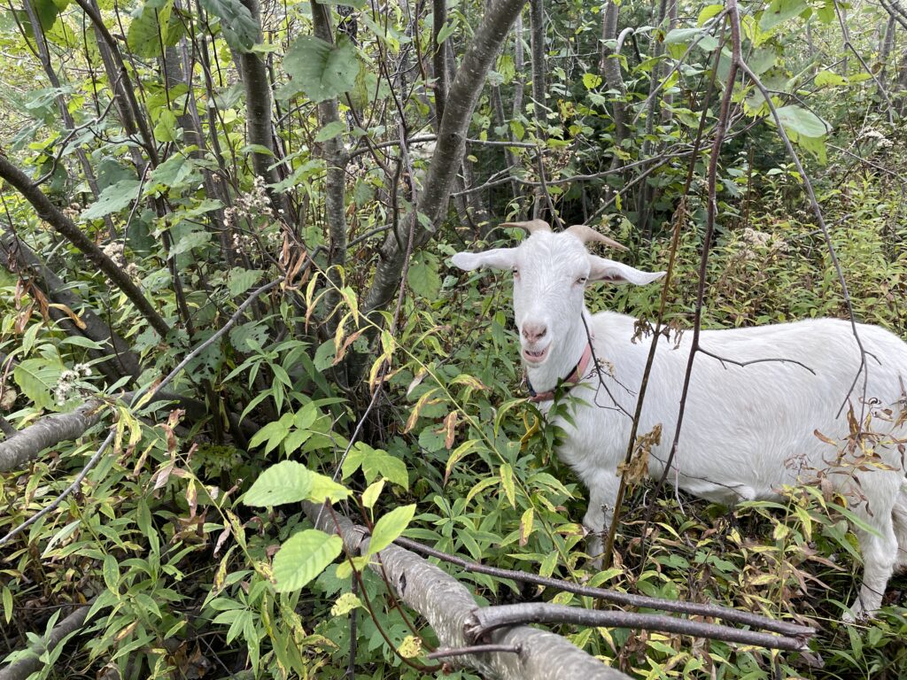 Remember: goats eat what they want, not what you wish they’d eat. If you’ve got plants you don’t want destroyed, fence them off.
